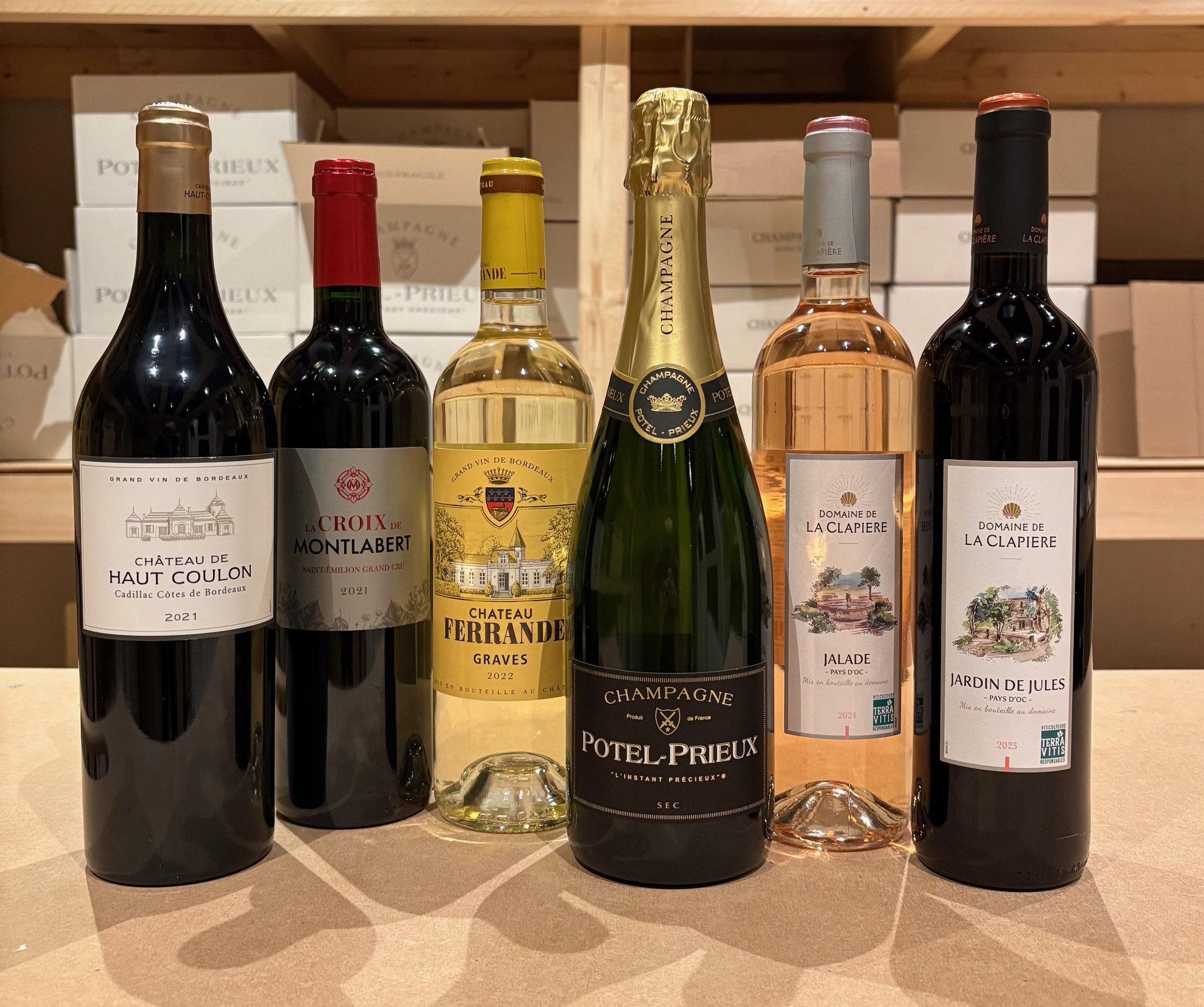 En harmonisk sammensætning af seks udsøgte vine, der spænder fra mousserende bobler og friske hvide noter til fyldige og elegante rødvine — perfekt til enhver lejlighed.